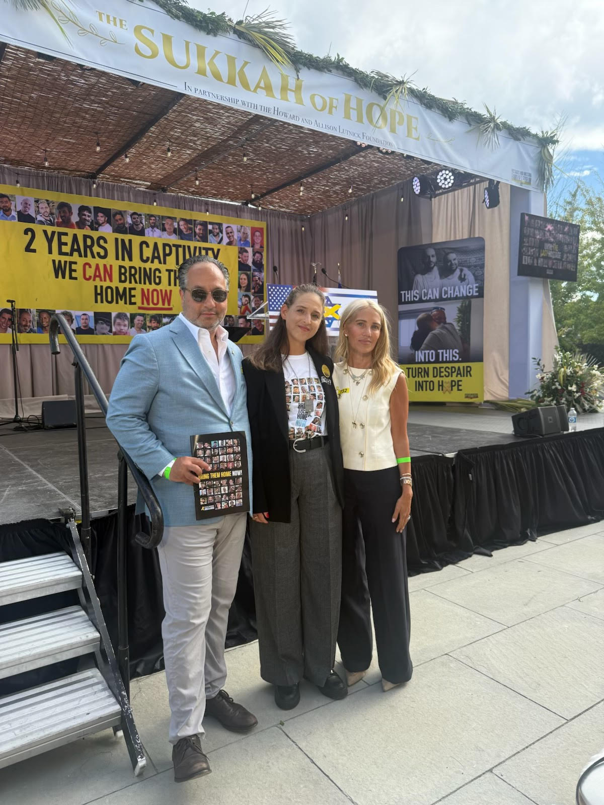 Tamid member, Michael Cohen, at the Sukkah of Hope with the Hostages and Missing Families Forum US.